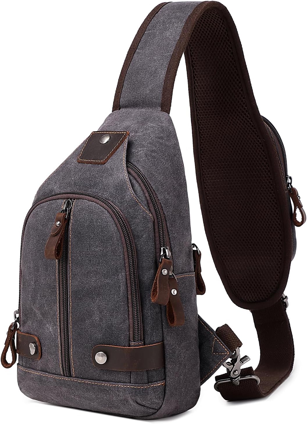 Crossbody Sling Bag Waxed Canvas Leather Shoulder Chest Bag for Men Daypack