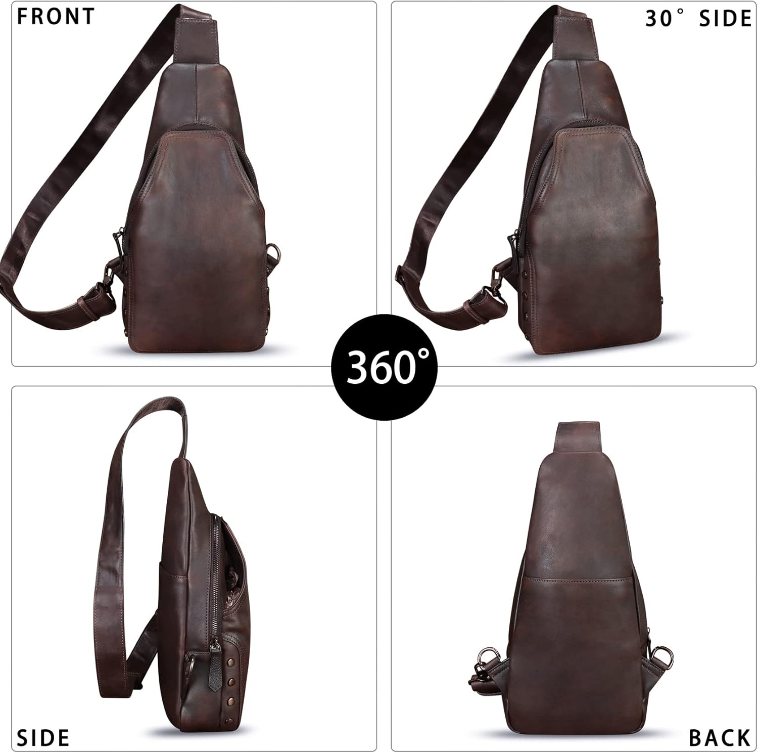 Genuine Leather Sling Bag Retro Crossbody Sling Backpack Handmade Chest Shoulder Daypack Purses Fanny Pack (Coffee) quantity